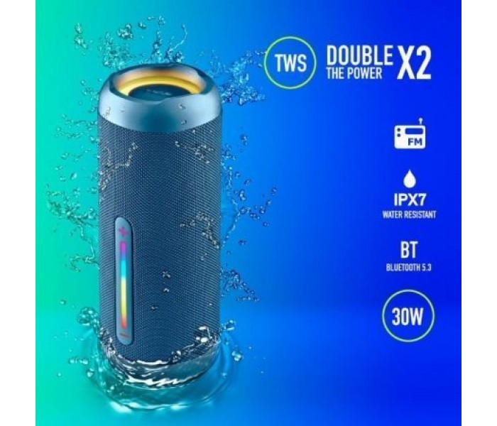 Altavoz inalámbrico compatible con tecnología Bluetooth 5.3 para disfrutar de la música tanto en el interior como en el exterior.. Tamaño compacto y portátil, proporciona sonido de alta calidad gracias a su gran potencia de salida, 30W.. Diseño robusto con material de tela resistente. Resistente al agua, conforme a la norma IPX7. Sumergible durante 30 minutos a menos de 1 metro de profundidad.. Amplifica el sonido, puede emparejar dos dispositivos de forma simultánea y aumentar la potencia de sonido gracias a su Tecnología True Wireless.. Compatible con la Tecnología Bluetooth: Conecta tu dispositivo vía Bluetooth y reproduce tu música con la mejor calidad de sonido.. Dispone de puerto de entrada USB & TF para conectarle una memoria de hasta 32GB.. Incluye entrada AUX In para Jack 3,5mm. Batería recargable de Litio de 7,4V/2500mAh que puede reproducir música hasta 9 horas (50 % de volumen).. Controla tu música desde el altavoz con los sencillos botones integrados.. Equipado con un cable de carga USB tipo C para cargarlo cómodamente.. El alcance del móvil para la reproducción de música es de hasta 10m.. . Especificaciones:. . Compatible con bluetooth 5.3 . TWS (consigue doble potencia conectando 2 altavoces al mismo tiempo sin cables) . Potencia pico de salida: 30W. Potencia RMS: 15W. Entrada de audio AUX . Entrada de audio USB: hasta 32GB. Entrada de audio TF: hasta 32GB. Control de volumen . Batería: Ion-Li 7,4V/2500mAh. Tiempo de funcionamiento: 9 horas. Resistente al agua: IPX7. Frecuencia de operación: 2402-2480MHz. Potencia máxima de salida de RF: 6dBm. Formatos de audio: MP3/WAV/WMA