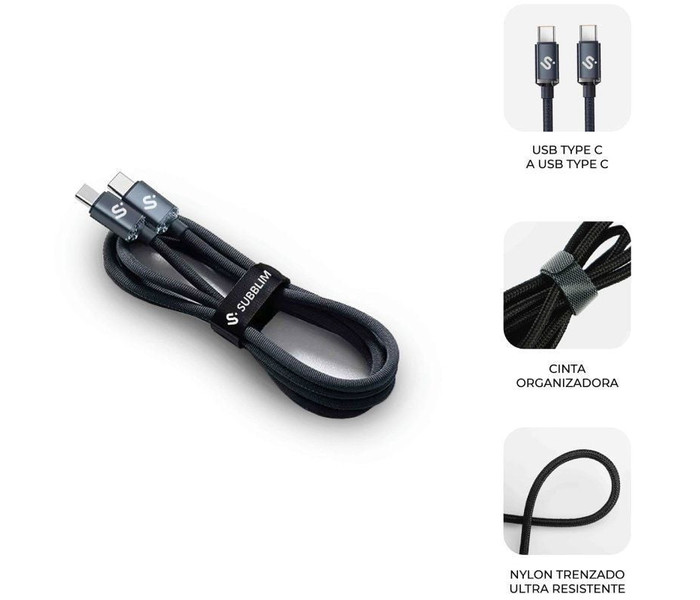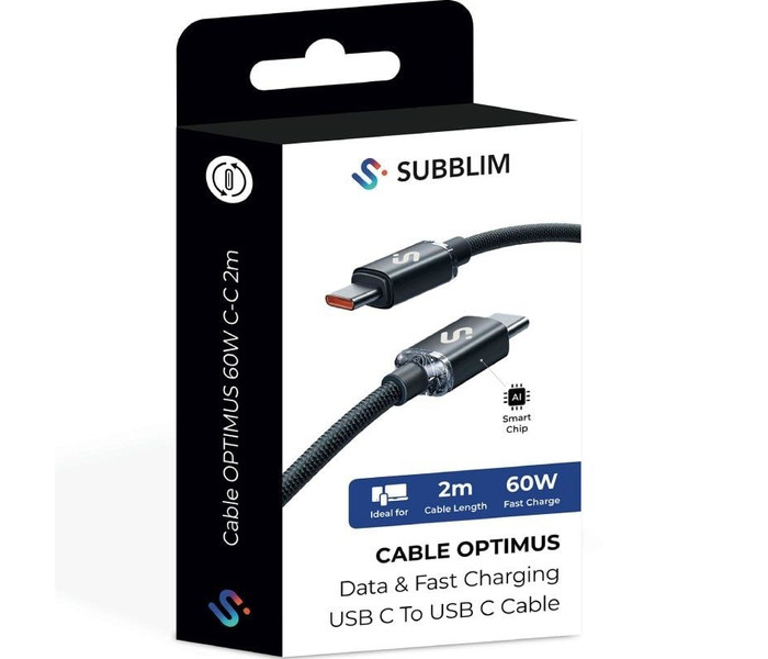 CABLE OPTIMUS 60W USB-C/USB-C 2 M NEGRO SUBBLIM
