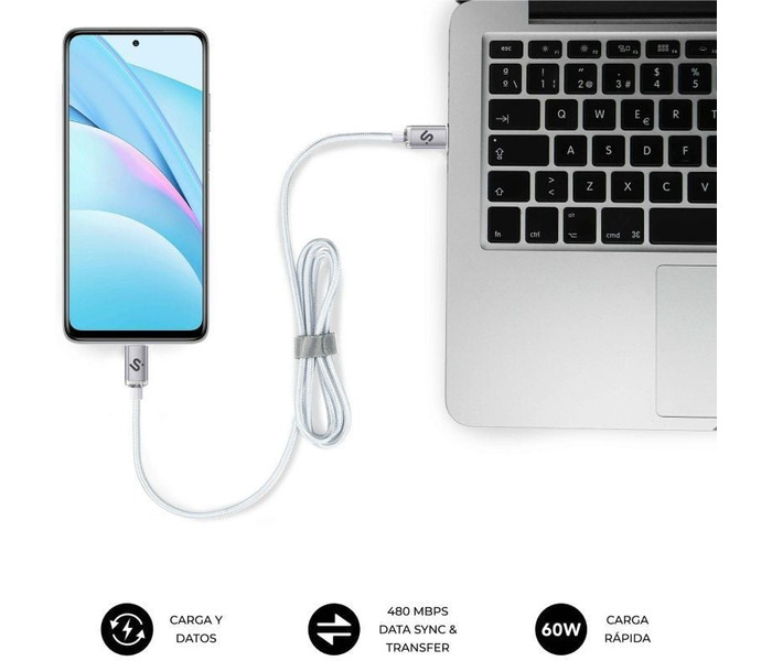 Presentamos el cable SUBBLIM USB C a USB C “Optimus”, la solución ideal para quienes buscan un cable capaz de ofrecer carga rápida de hasta 60W (20V/3A) y una velocidad de transferencia de datos de 480Mbps. Gracias a su fabricación con nylon trenzado de alta densidad y conectores de aluminio, este cable garantiza durabilidad y un rendimiento confiable en cada uso.