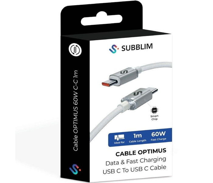 CABLE OPTIMUS 60W USB-C/USB-C 1 M BLANCO SUBBLIM