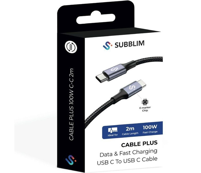 CABLE PLUS 100W USB-C/USB-C 2 M NEGRO SUBBLIM