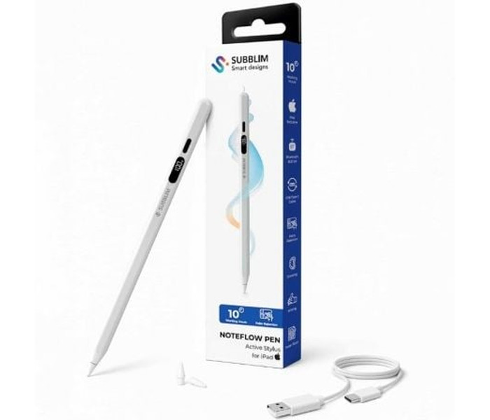 Lápiz Electrónico Subblim NoteFlow Pen para iPad/ BlancoEscribe y dibuja como en papel en tu iPad. N..