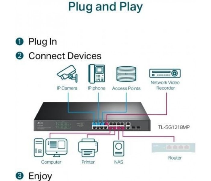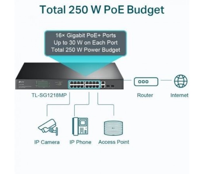 SWITCH TP-LINK 18-PORT GSWITCH TP LINK TL-SG1218MP / 16x1G POE+, 2xSFP, 250W