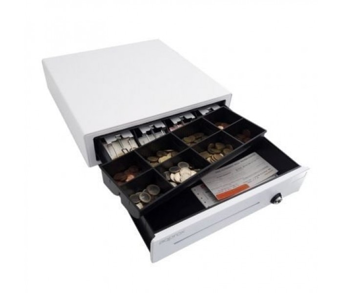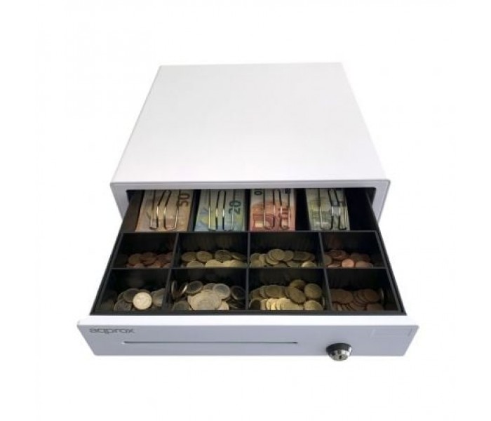 El APPCASH01WH es un cajón portamonedas eléctrico fabricado con material