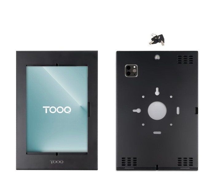 Marco antirrobo con cerradura a llave para tablets de 11”Tablets compatibles:- 11”: Samsung Galaxy TAB A9+, Samsung Galaxy TAB S9, Samsung Galaxy TAB S8, Samsung Galaxy TAB S7, Samsung Tab S11, iPad Pro3, iPad Pro4, iPad Pro5, iPad Pro6, iPad Pro7, iPad Pro 8, iPad Air6, iPad Air 7- 10,9”: Samsung Galaxy TAB S9 FE, Samsung Tab S10 FE, Samsung Tab S10 Lite, iPad Air4,iPad Air5, iPad 10Compatible con VESA 75x75Ranuras para un fácil acceso a todos los botones, cámara y cable de alimentación de la Tablet.Incluye dos paneles frontales para escoger el que mejor se adapte al dispositivo.Permite instalación directa en pared o montaje sobre soporte con VESA 75x75, como los modelos TQATC2601-B y TQATWM3401-B, entre otros.Almohadillas de protección para evitar arañazos y mejorar la sujeción.Peso máximo soportado: 1 KgColor: NegroMaterial: fabricado en acero de alta calidadMedidas del producto: 220x323x22 mmPeso Neto: 1,680 Kg Peso bruto: 1,780 KgMedidas embalaje: 225x380x33 mm