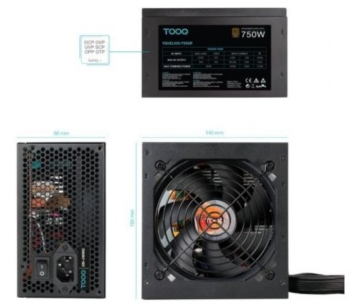 - Conectores: 1 conector ATX (24 pines) - longitud exterior 550 mm, 1 conector CPU (P8 4+4 pines) - longitud exterior 600 mm, 4 conector PCI-E (P8 6+2 pines) - longitud exterior 550+150 mm, 5 conectores SATA y 3 MOLEX - longitud exterior 550+150+150+150 mm