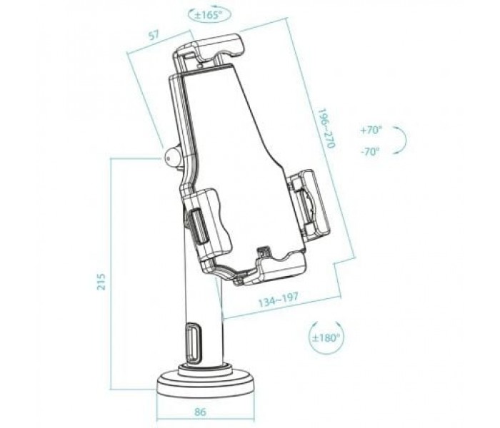 - Alto del soporte de tablet: mín 196 – máx 270 mm